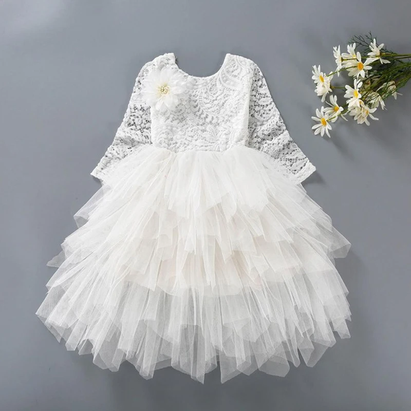 Новое платье для девочек, кружевная детская одежда с длинным рукаво...