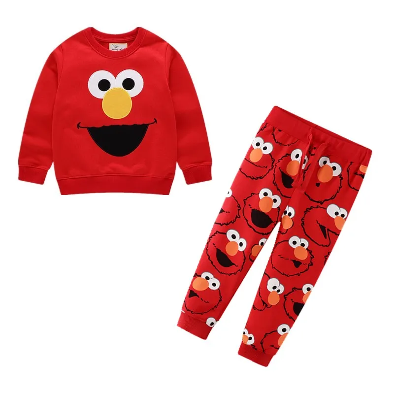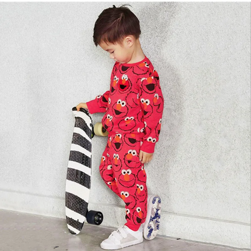 Осенне-зимние комплекты одежды для мальчиков и девочек из хлопка с рисунком Элмо, рубашка с длинным рукавом и штаны