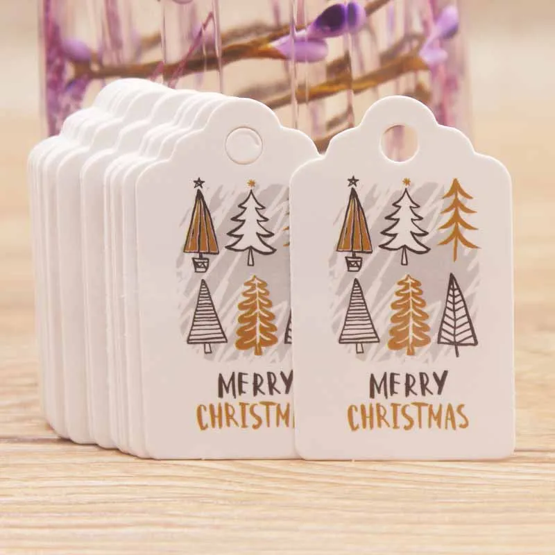 Бирки из крафтовойбелой бумаги в рождественском стиле, 100 шт., руч...