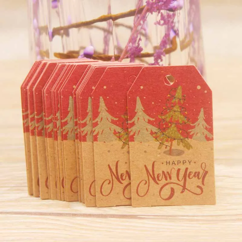Рождественские бирки, 100 шт., 5*3 см, карточка из крафт-бумаги, По...