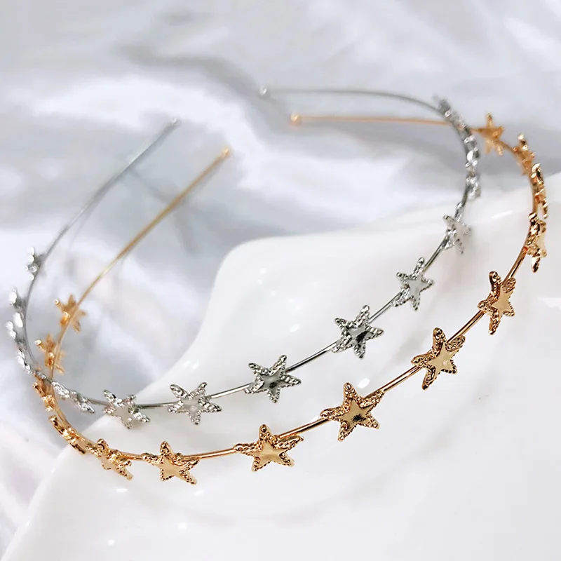 Повязка на голову Золотая, серебряная, Геометрическая Звезда, обруч для волос из сплава, аксессуары для волос