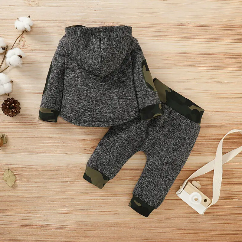 Весенняя толстовка с капюшоном, штаны, 2020, для малышей, камуфляж для маленьких мальчиков, размер комплект леггинсов, От 0 до 3 лет
