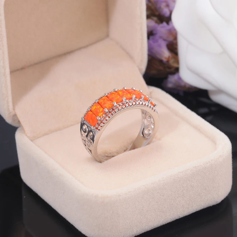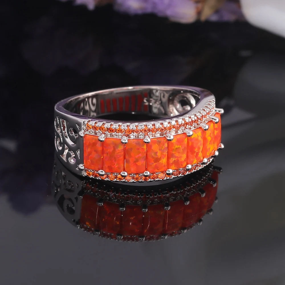 Женское кольцо с огненным опалом CiNily, белое и оранжевое кольцо из стерлингового серебра 925 пробы на день рождения, размер 6-10