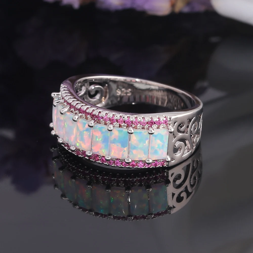 Кольца CiNily с опалом и фианитом, посеребренные, летние ювелирные ...