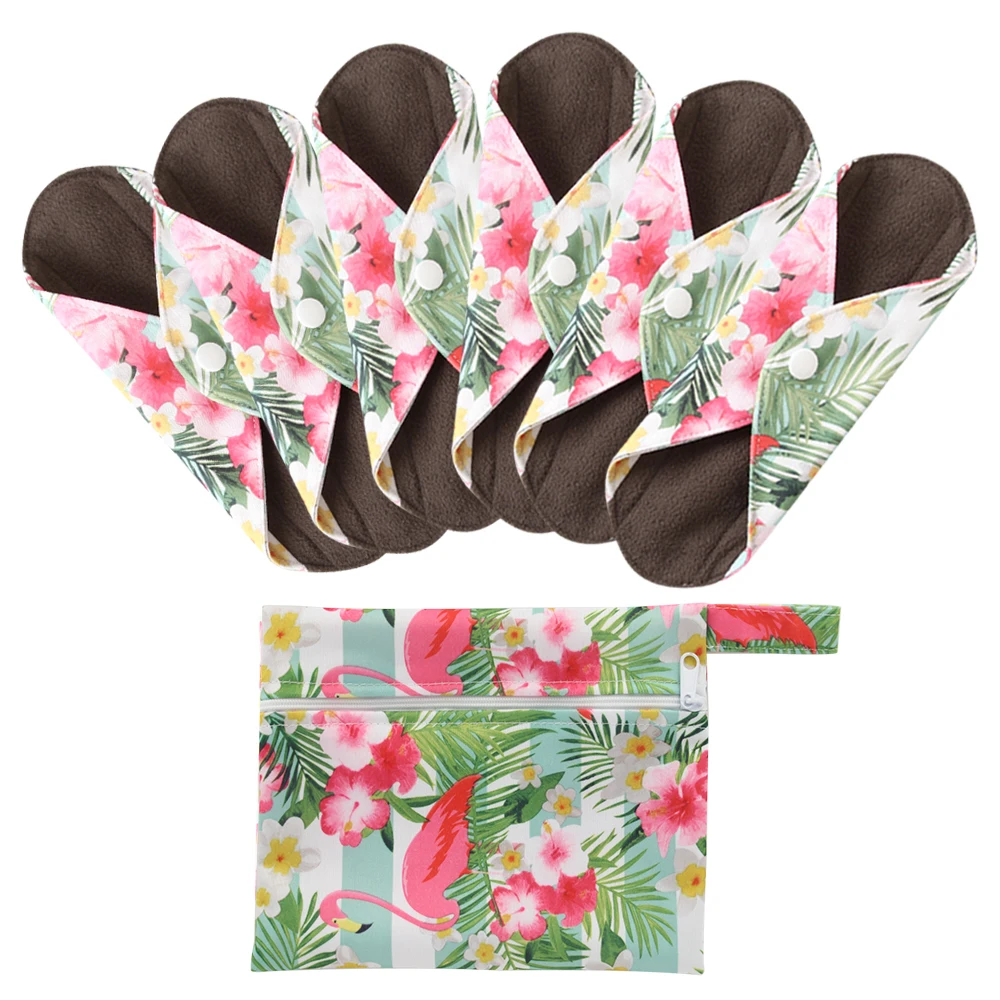 7 шт. в наборе (6 шт. женская гигиеническая прокладка + 1 бесплатный мини влажный мешок), моющиеся менструальные салфетки для женщин, прокладка для трусов, бамбуковый уголь, дневной коврик