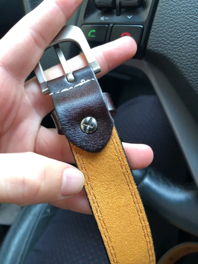 бомбический ремень!!! внутри точно кожа , сверху полиуретан , но супер качество. регулировать можно , открутить шуруп