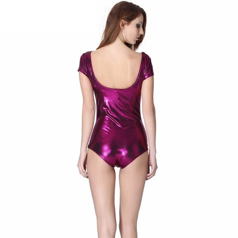 Женский металлический купальник с коротким рукавом из лайкры и спандекса с глубоким вырезом, тянущийся Цельный купальник для балета, танцев Боди для танцев