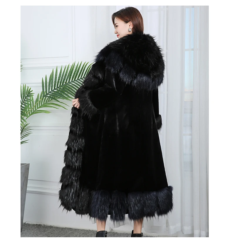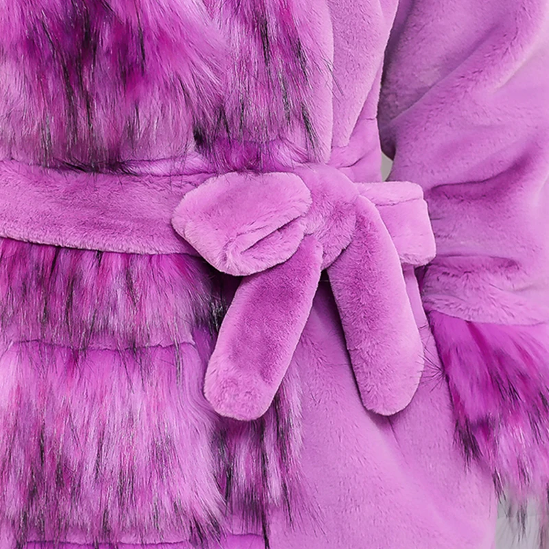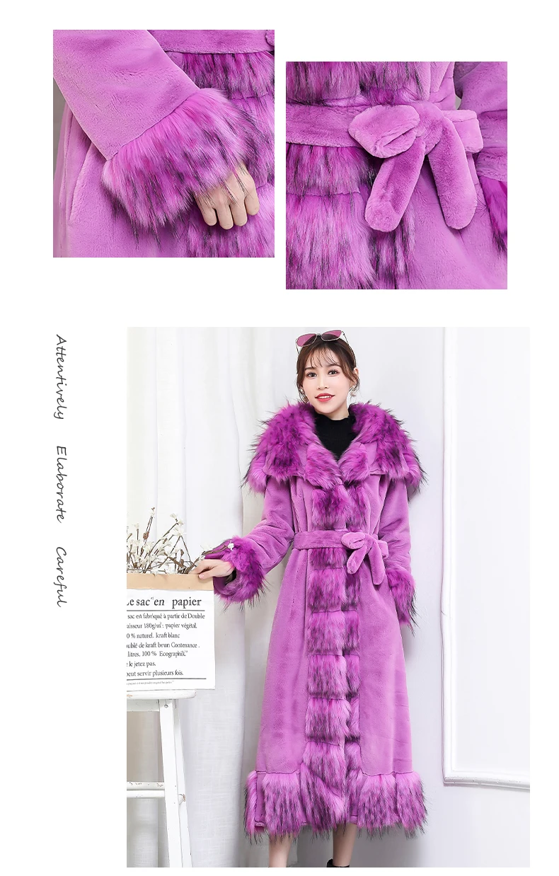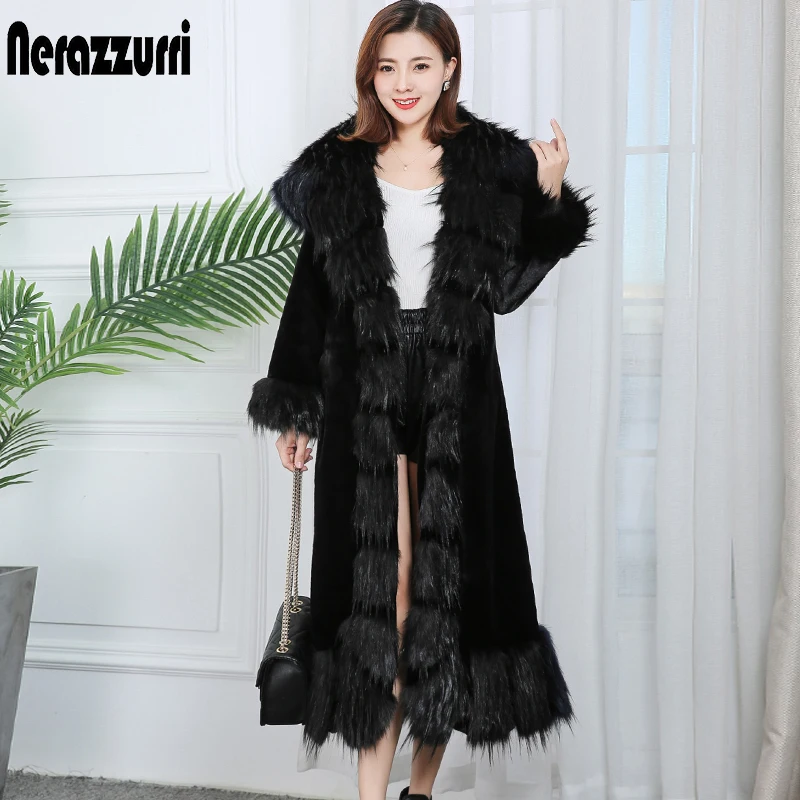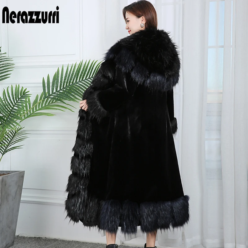Nerazzurri длинные женские шубы из искусственного меха толщиной теплый фиолетовый черный шубки из искусственного меха с отделкой из лисьего меха пальто из искуственного меха эко шубы