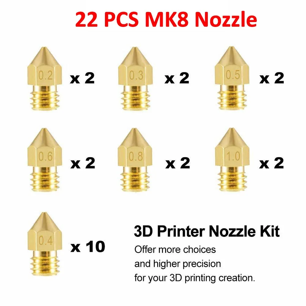 Насадка экструдера MK8, 22 шт., печатающая головка 1,75 мм, сопло для 3D принтера 0,4 0,5 0,6 0,8 0,3 1,0 мм для Makerbot Creality CR-10 Ender 3 5