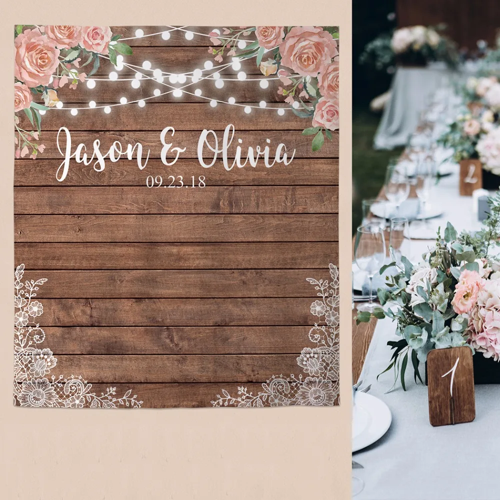 Фон для фотосъемки Allenjoy Свадьба Цветок деревянная стена пол вес...