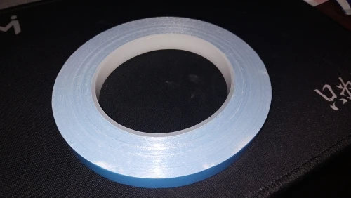 Отрезал кусочек, основа похоже тканевая ( но я не понял что это, типо стекловолокна, не тянется вообще, от слова Совсем) потом двустороннее покрытие чем-то типа теплопроводного силиконового клея, и тонюсенький клейкий слой, в работе оценю позже, толщина наверное раза в 4 меньше чем у обычных силиконовых прокладок.