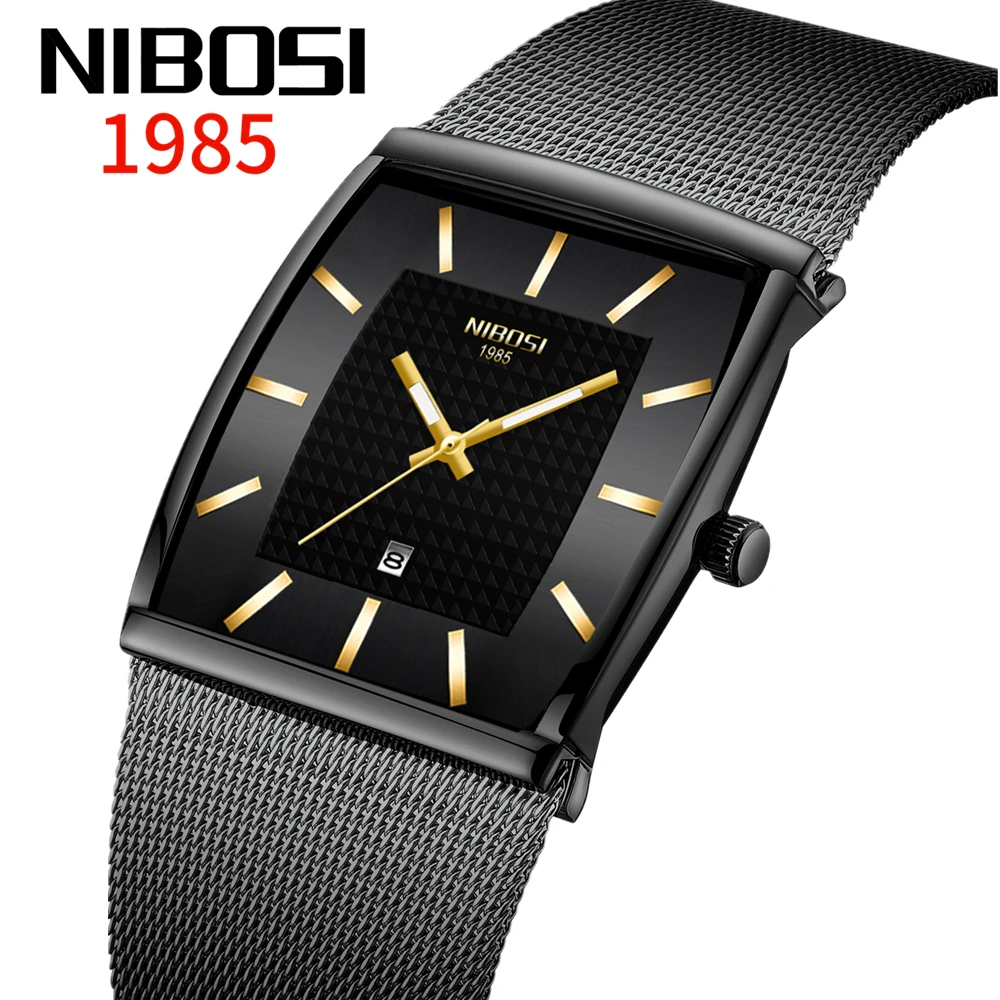 2021 мужские часы NIBOSI квадратного дизайна, Роскошные ультратонки...