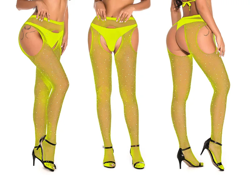 Сексуальное Сетчатое женское белье чулки женские блестящие стразы к...