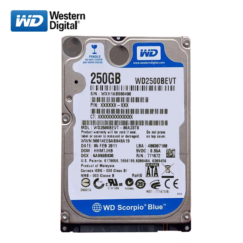 WD 250GB внутренний жесткий диск 2,5 "5400RPM 8MB кэш SATA 1,5 Gb-6Gb /s 250G синий жесткий диск HD Жесткий диск для ноутбука