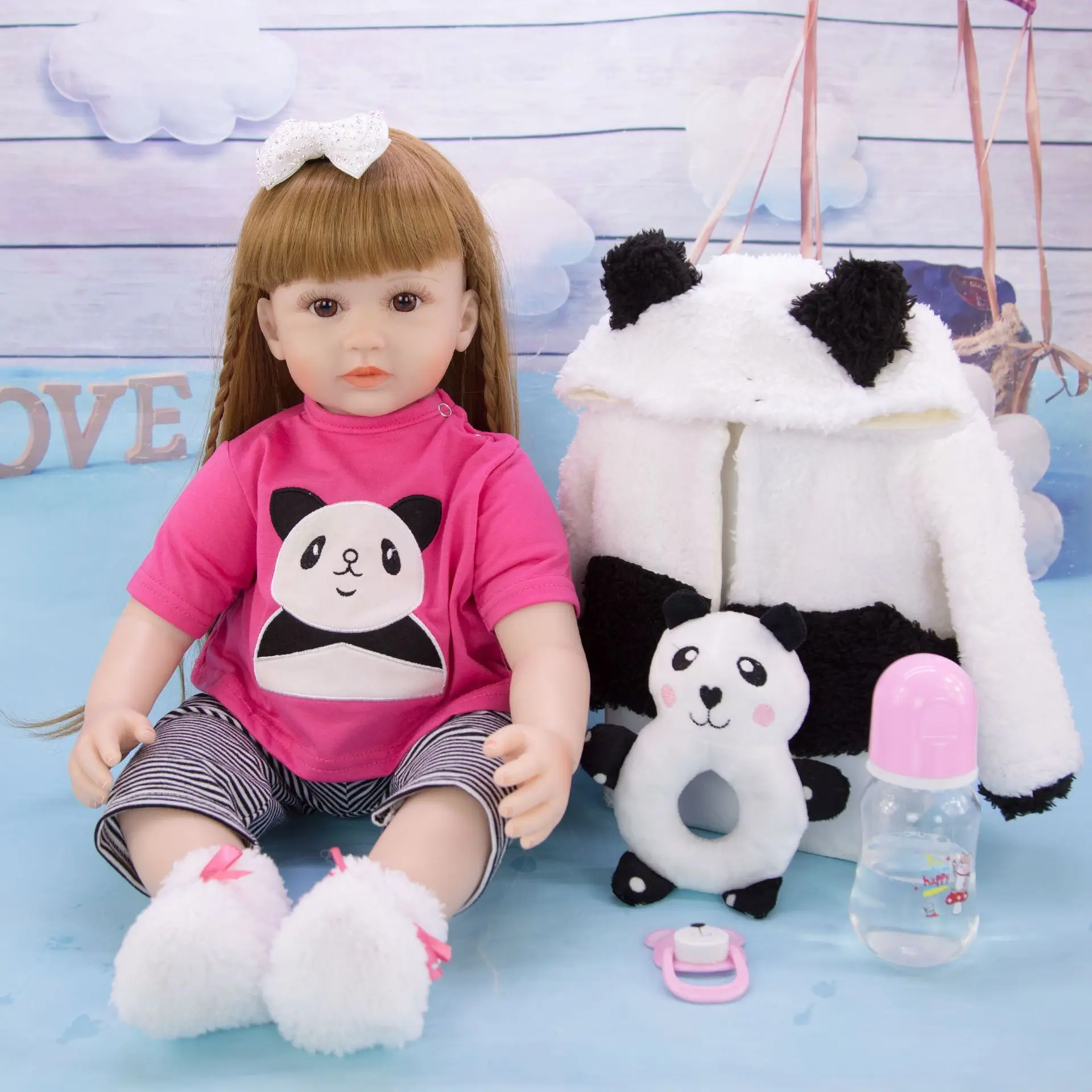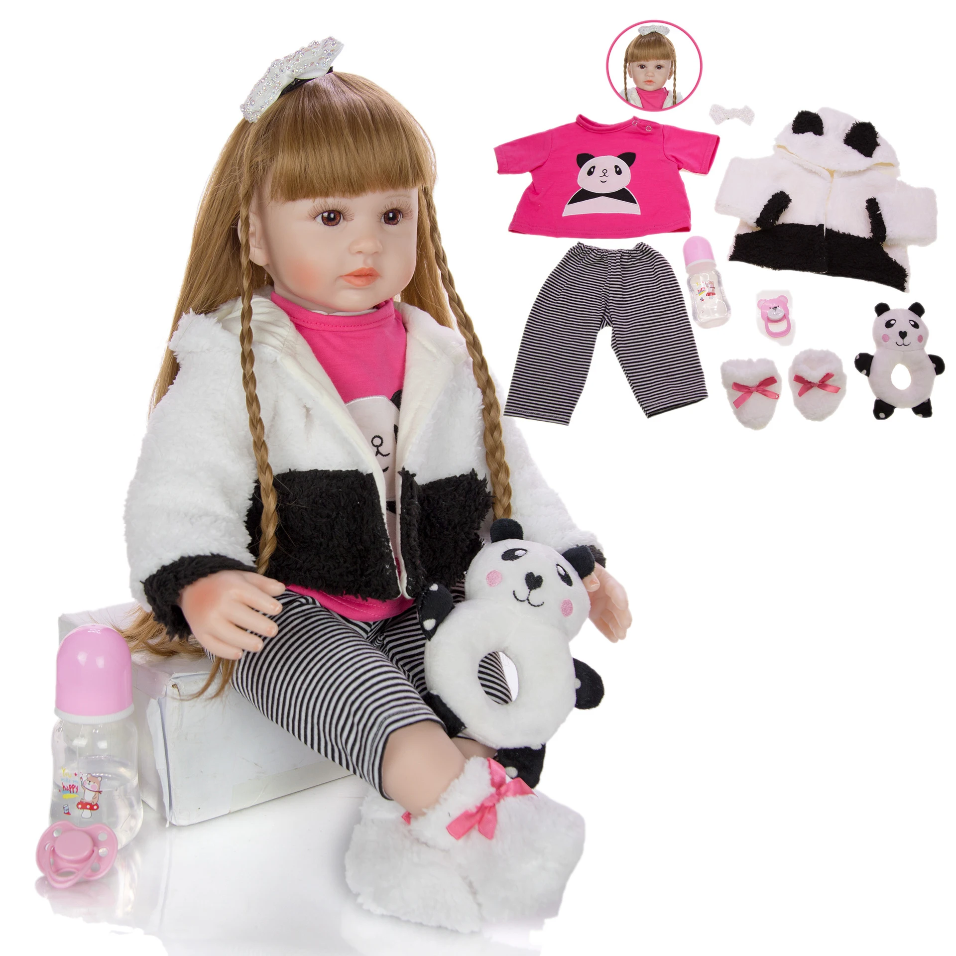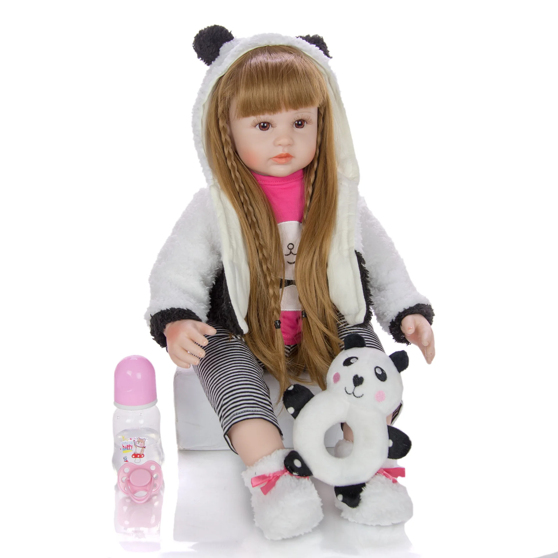 Мягкая силиконовая виниловая кукла-реборн KEIUMI, 60 см, Реалистичная, 24 дюйма, длинные волосы, панда, кукла для детей, подарок
