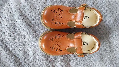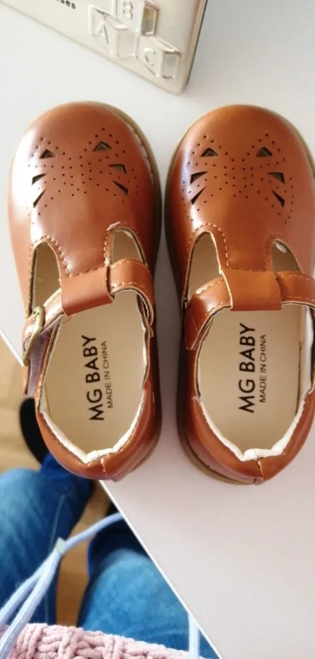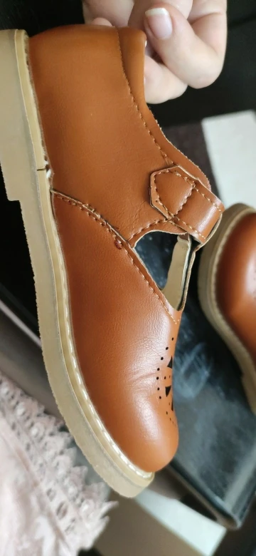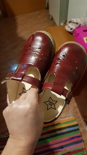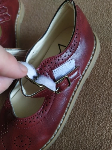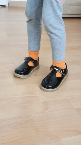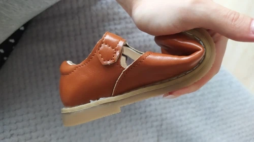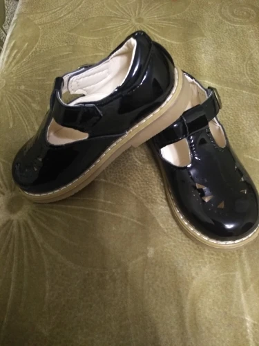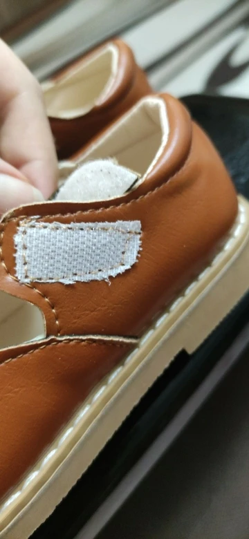 зачем писать кожаная? кожа молодого дермантина, ну я поняла что за такую цену кожа не придет, поэтому норм. мне кажется подошва слишком мягкая для детской обуви, в целом не плохо, липучка так себе, думаю быстро испортится