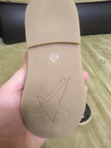 Красивые сандальки. Стелька мягкая, а вот сам полиуретан жестковат. Продавец не вложил в носок сандали ни бумагу ни пенопластовую вкладку. В результате заломы. Застежка на липучке. Подошва порадовала, плотный каучук.