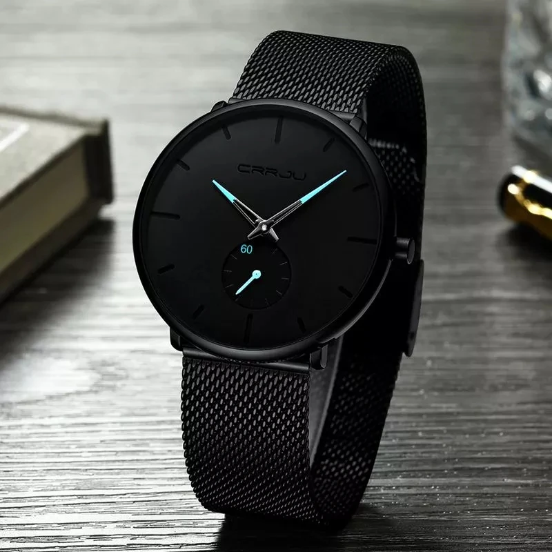 Часы CRRJU мужские из нержавеющей стали, брендовые роскошные классические кварцевые ультратонкие, наручные, 2150