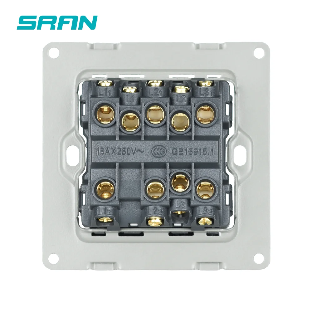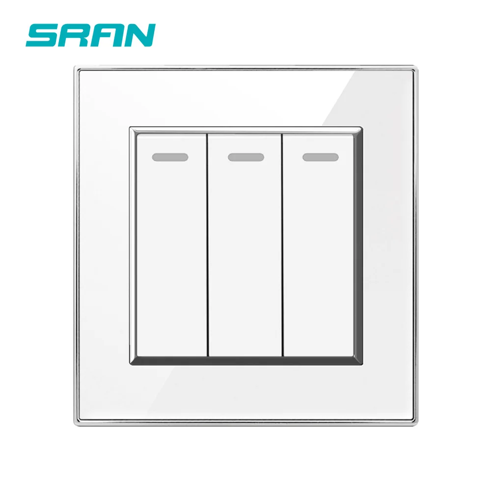 SRAN настенный светильник питания переключатель 3 открытый с двойным управлением 3 банды 1/2 пути роскошные кнопки переключатели 86*86 мм Хрустальная акриловая панель