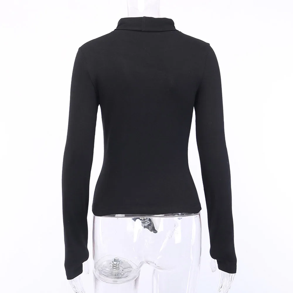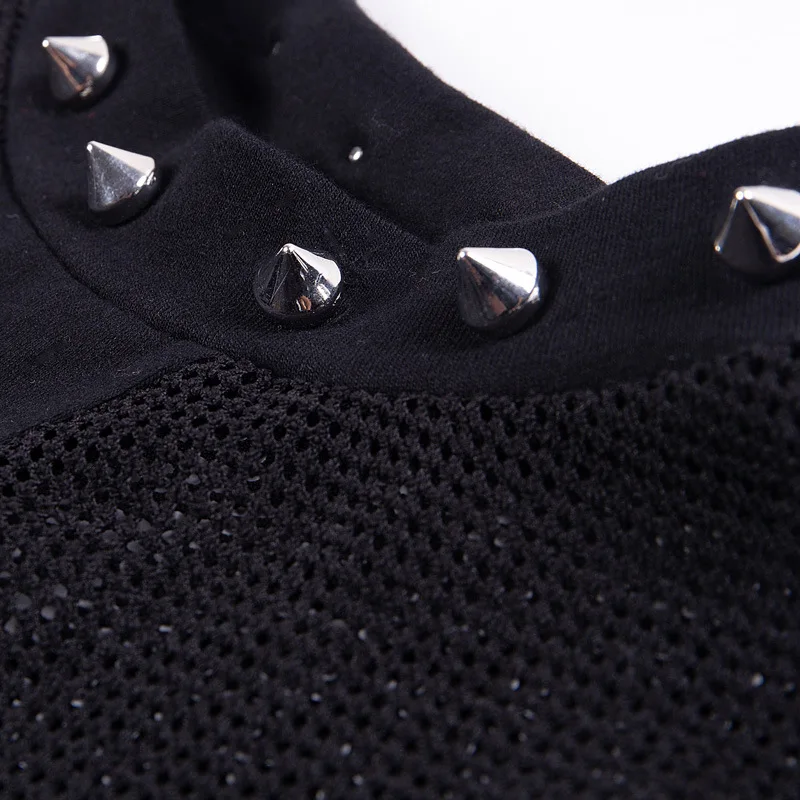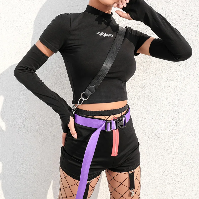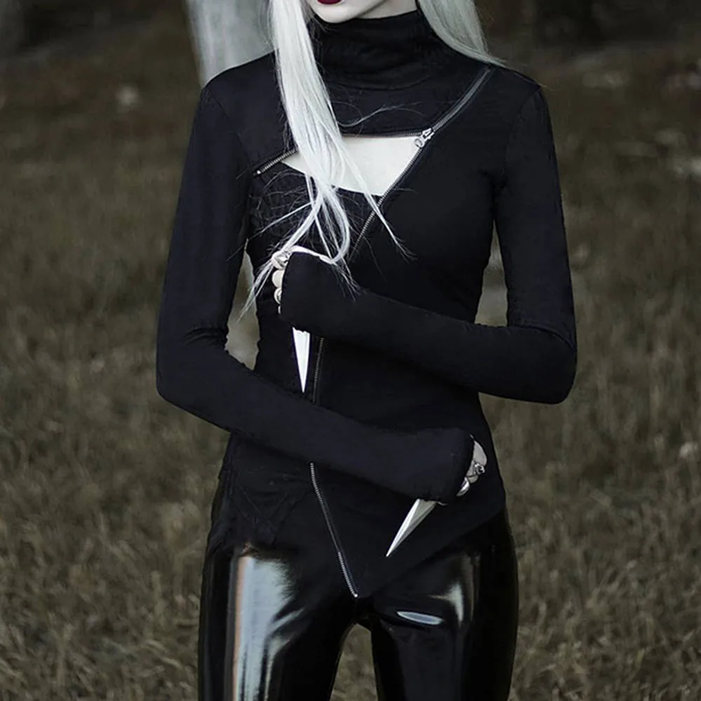 Rosetic 2020 Готический сексуальный короткий топ, прозрачный сетчатый топ, футболка с длинным рукавом, Женская водолазка с металлическим воротником, футболки в стиле панк, уличная футболка