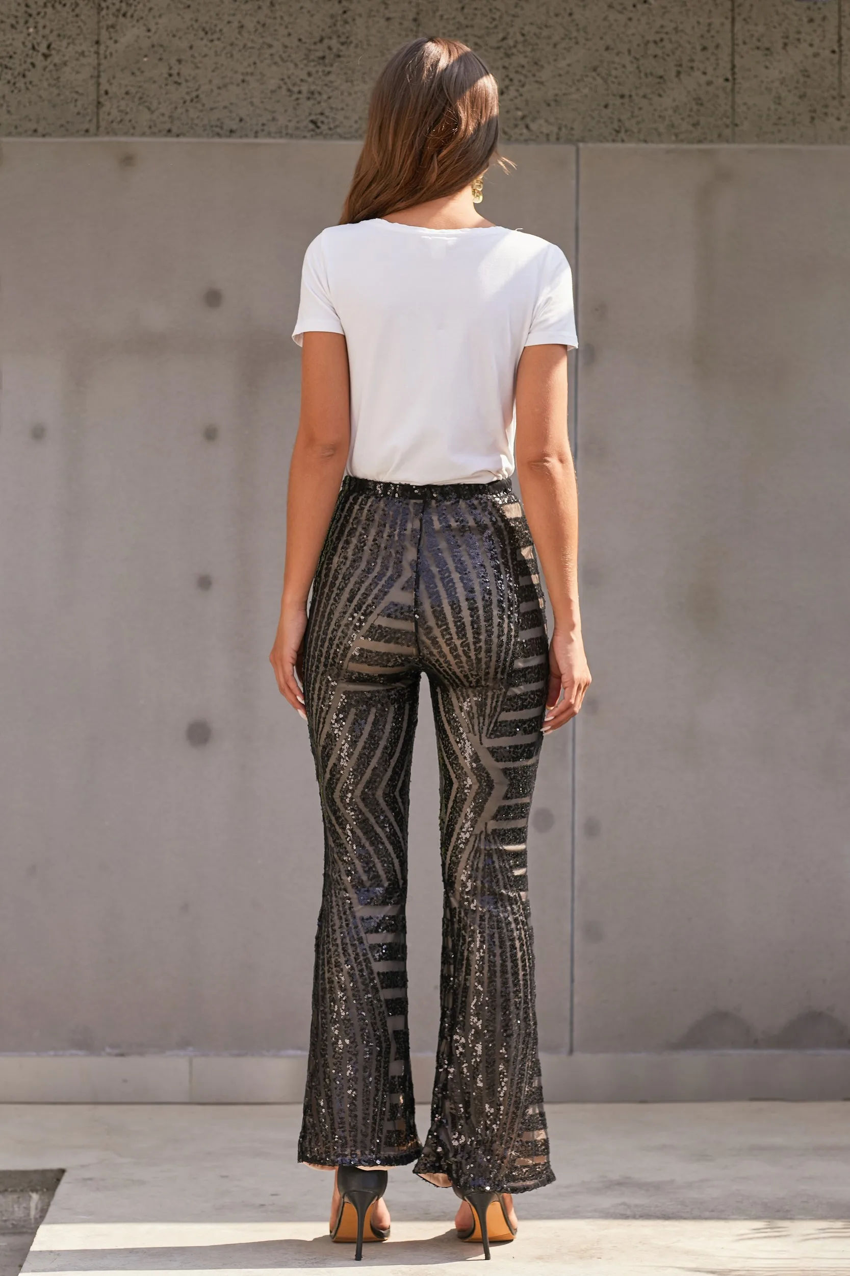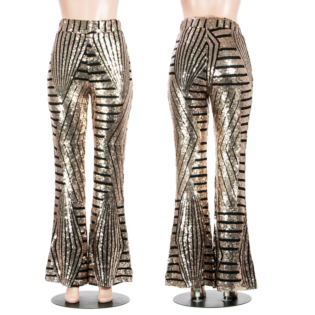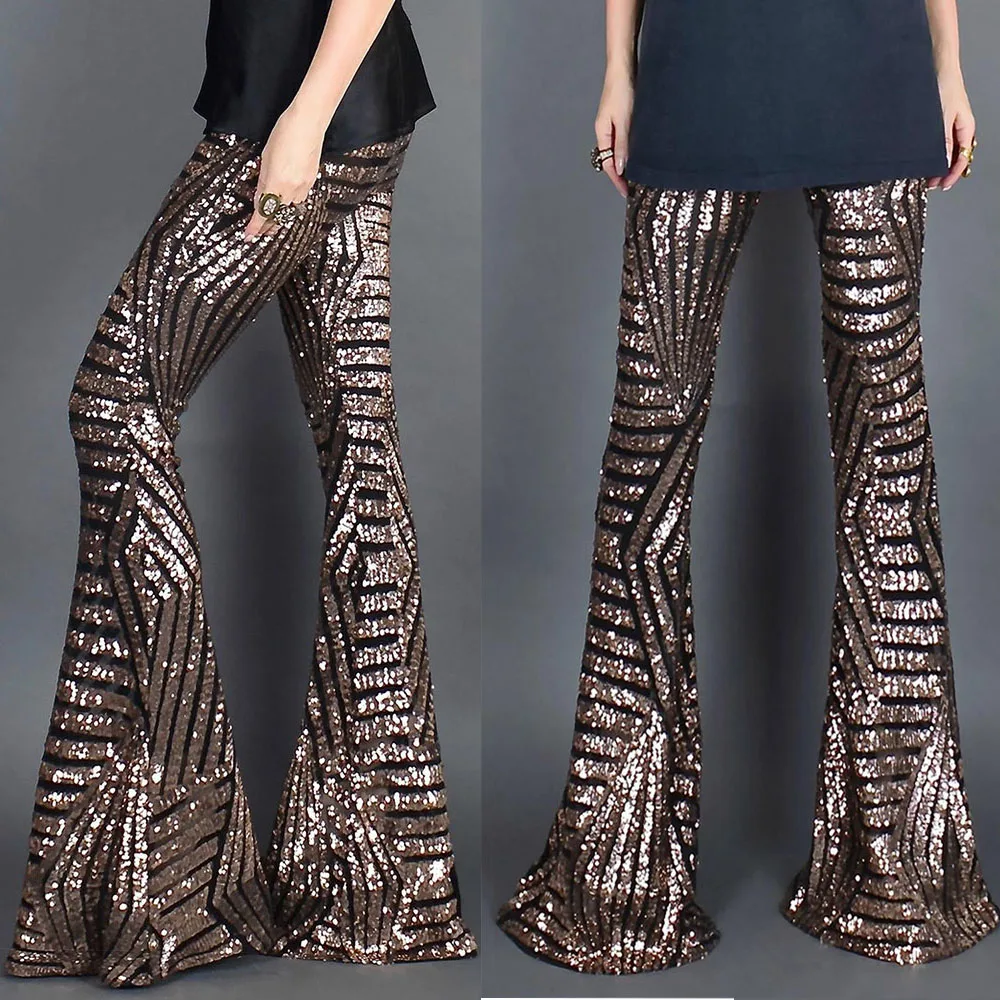 Пикантные черные и Серебристые блестящие длинные расклешенные брюки с широкими штанинами и высокой талией для вечевечерние, клуба, Рождества, брюки, уличная одежда