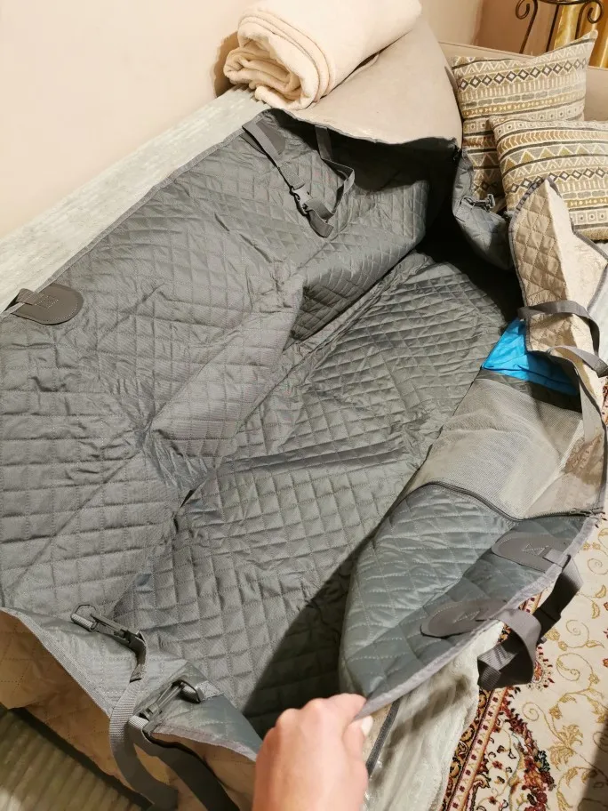 Неплохой гамак. Лучше, чем просто настилка на сидение. Собаке комфортно. Но! На Форд фьюжн оказался большеват (не смотрела описание и не мерила ничего, думая, что большой - не маленький, судя по отзывам). Пёс у меня большой - дог. Ложится и эта сетка оказывается ниже него, то есть по сути не нужна, он ведь итак все видит, но при этом из этой сетки сыпется шерсть и все сиденье в этом месте, естественно, в шерсти! Плюс недостаток - спинки передних сидений тоже защищены наполовину только, верхние подушки со всех сторон тоже пачкаются. Вердикт таков, что гамак бы я однозначно купила, но не этот. Не стоит того, когда есть на али в 2 раза дешевле без сетки.