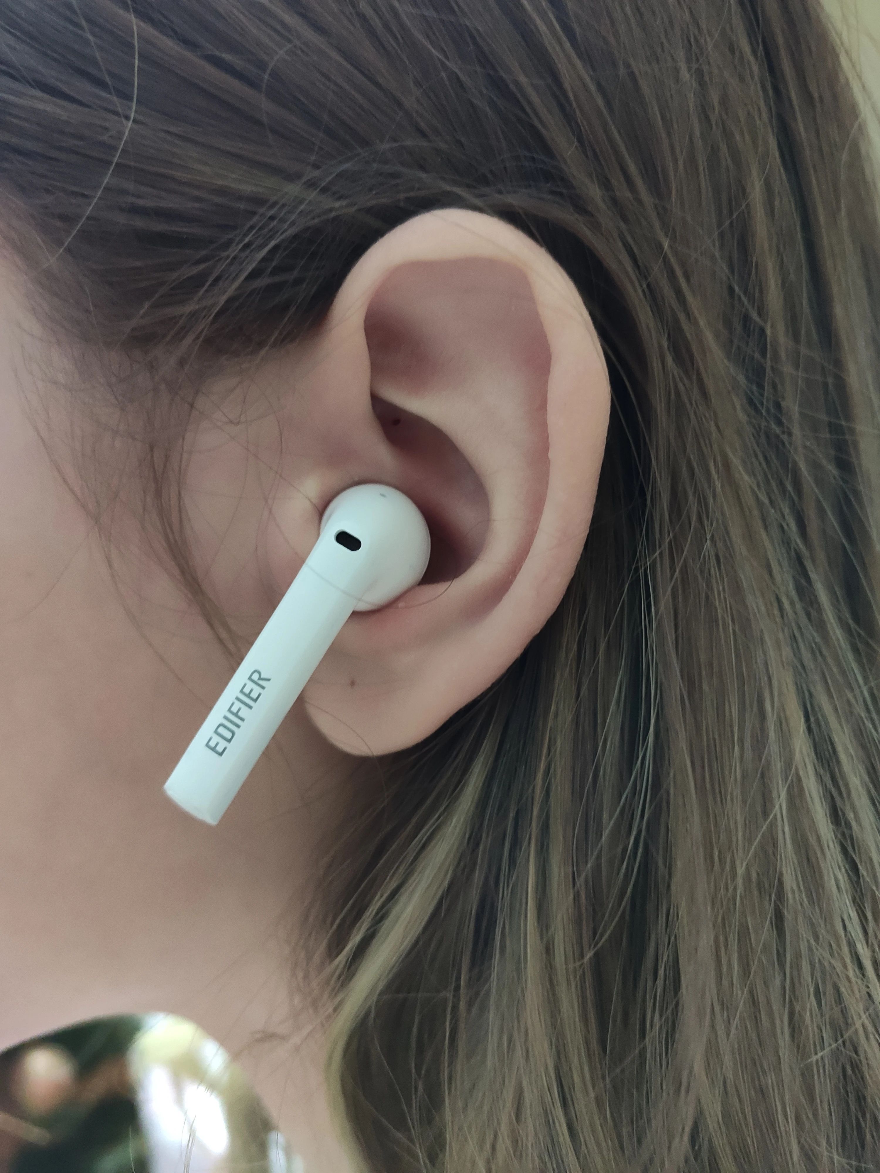 The earbuds fits perfectly in the ears. The quality of sound is good enough for Bluetooth earbuds. The seller is highly recommended!