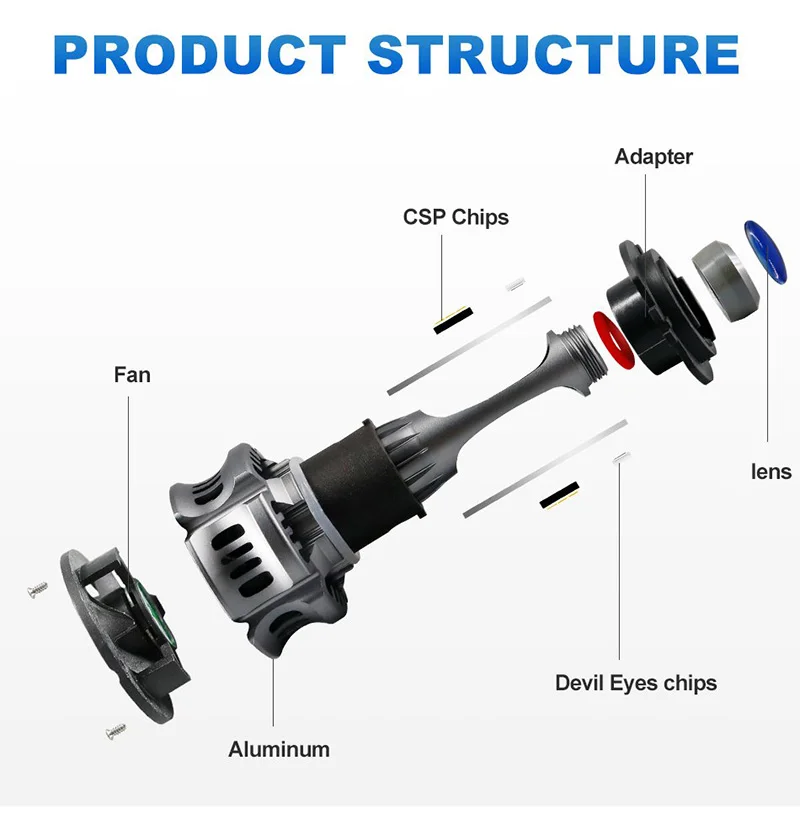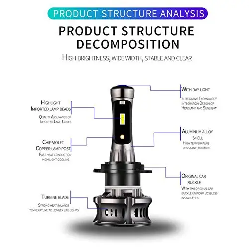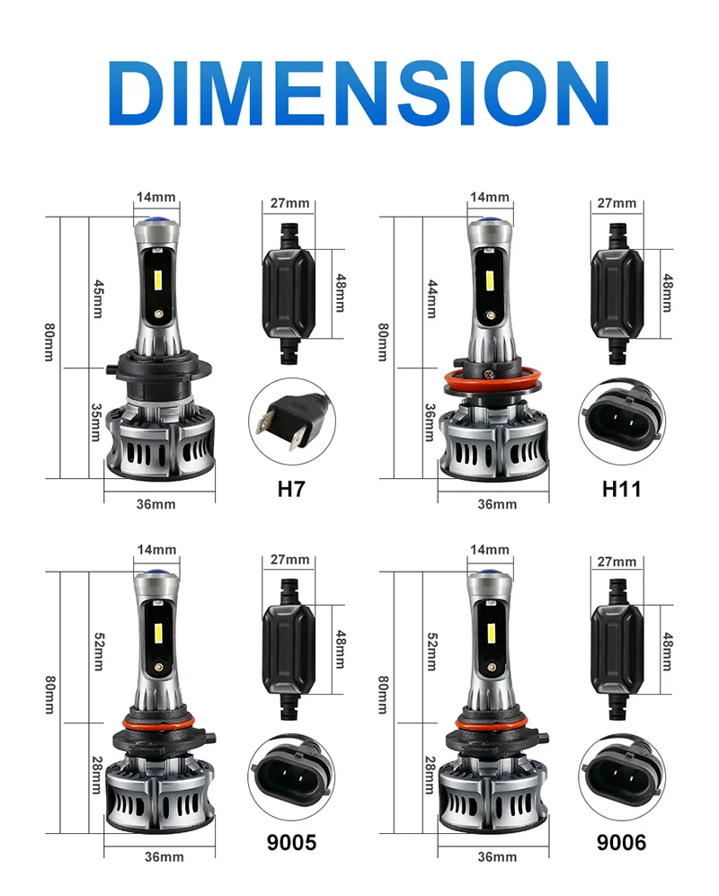1. Высокая яркость: новейшая технология CSP с чипом холодного белого света 6000K; На 200% ярче, чем существующие галогенные фары. Передовые технологии обеспечивают идеальную диаграмму луча без черных пятен или противотуманных фар.