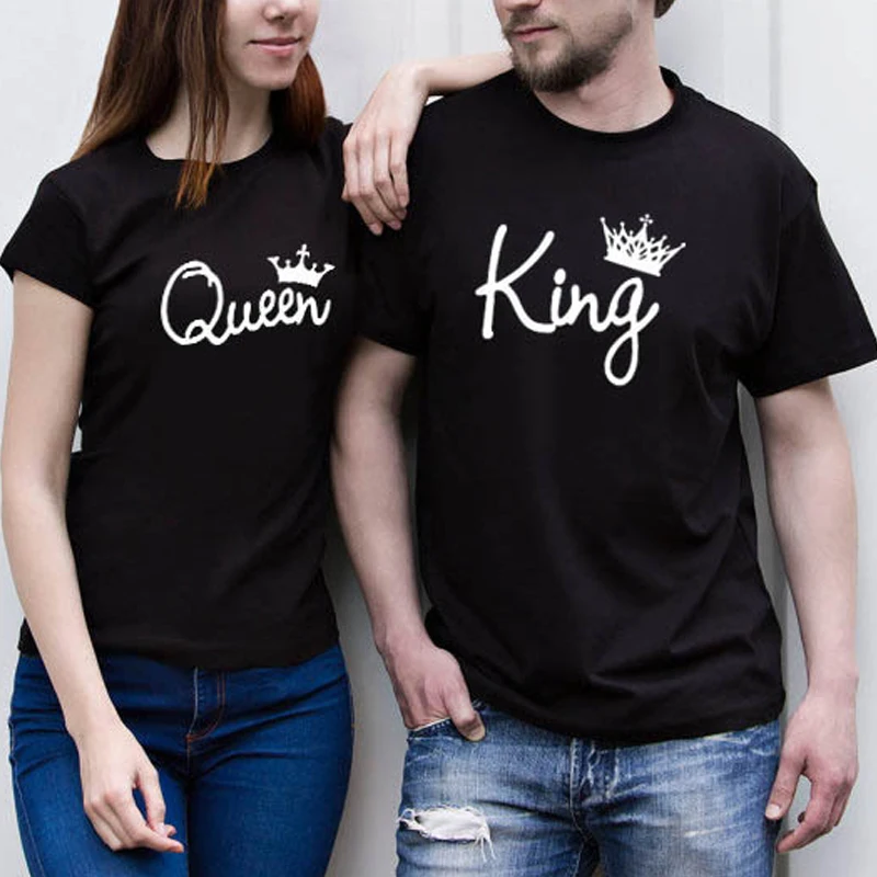 Модная Повседневная футболка с принтом, с короткими рукавами, круглым вырезом, надписью с принтом короны, парная толстовка с короткими рукавами