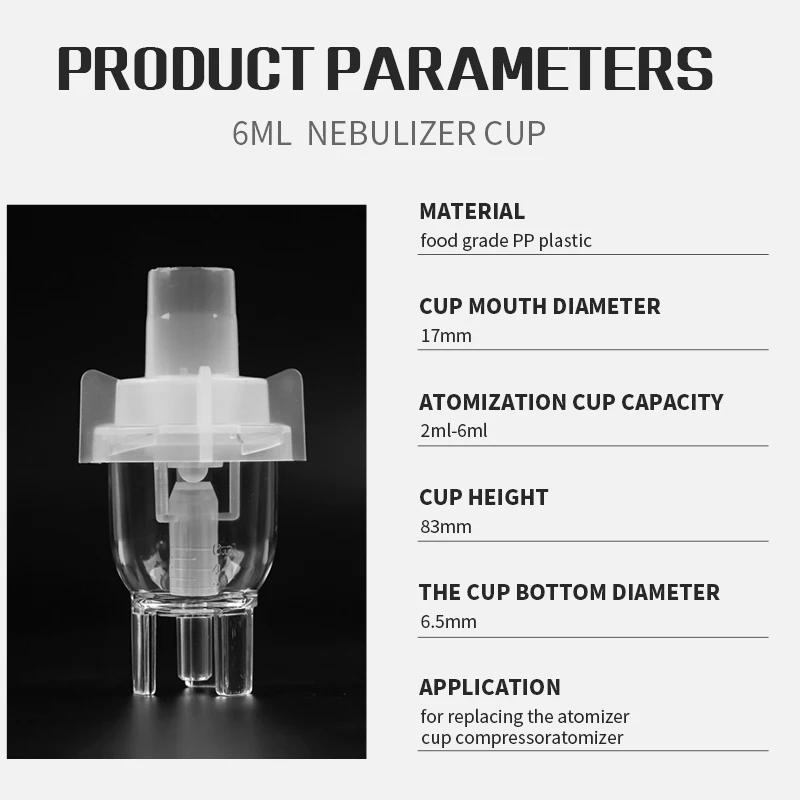 Подходит для воздушного компрессора небулайзера, использование гидравлического может образовывать распыление частиц 5 микрон, распространенное в Европе, США, британские правила, GB. Чашки небулайзера обычно используются для поставок из нетоксичного PP материала (полипропиленовый материал обычно используется для изготовления коробок, чашек, медицинских принадлежностей и т. д., мы рекомендуем одну чашку, не может использоваться взаимозаменяемо, чтобы избежать вторичных инфекций! Повторное использование не рекомендуется, чтобы избежать возникновения старения жидкого материала и фармацевтического ответа.