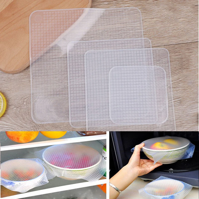 4 шт.компл. многоразовые силиконовые Эластичные крышки, чаша, крышка для пищевых продуктов, вакуумная упаковка, крышка для хранения пищевых продуктов, сохранение свежести кухонные крышки