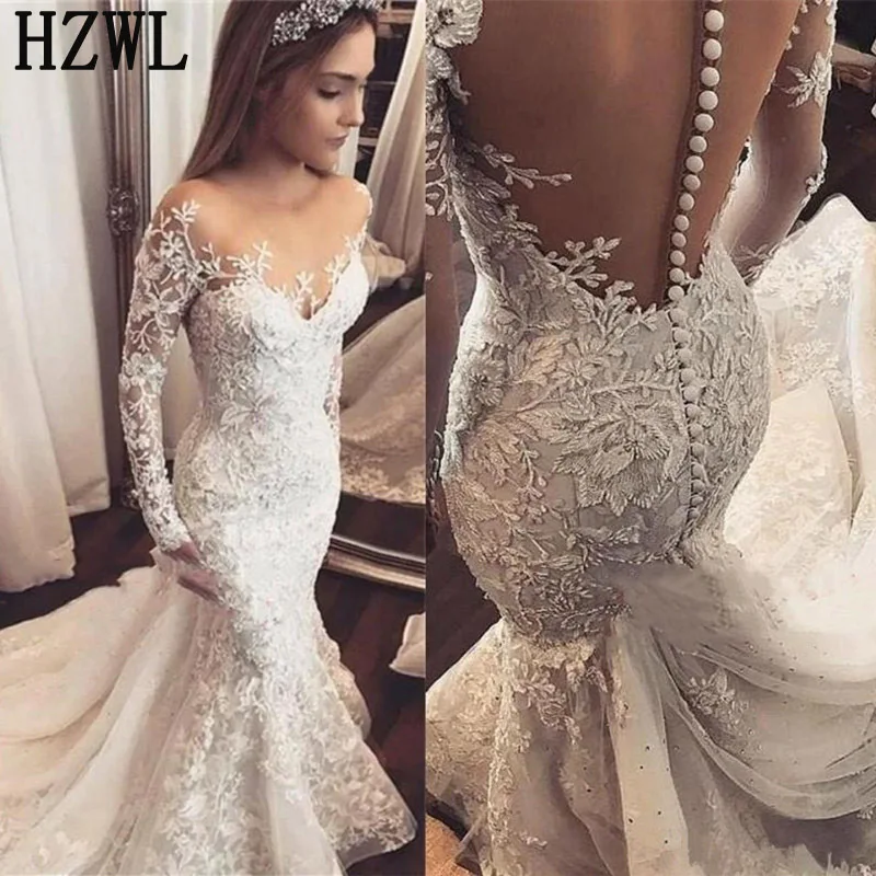 Женское свадебное платье-Русалка It's yiiya, белое кружевное платье с длинным рукавом и открытой спиной на лето 200