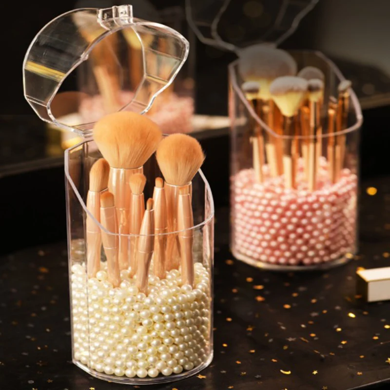 Прозрачный, косметический Органайзер, Кисть для макияжа, коробка для хранения, жемчуг, пластиковая коробка, пыль, трубка для хранения, аксессуары для ванной комнаты, высокая емкость,
