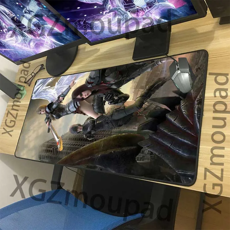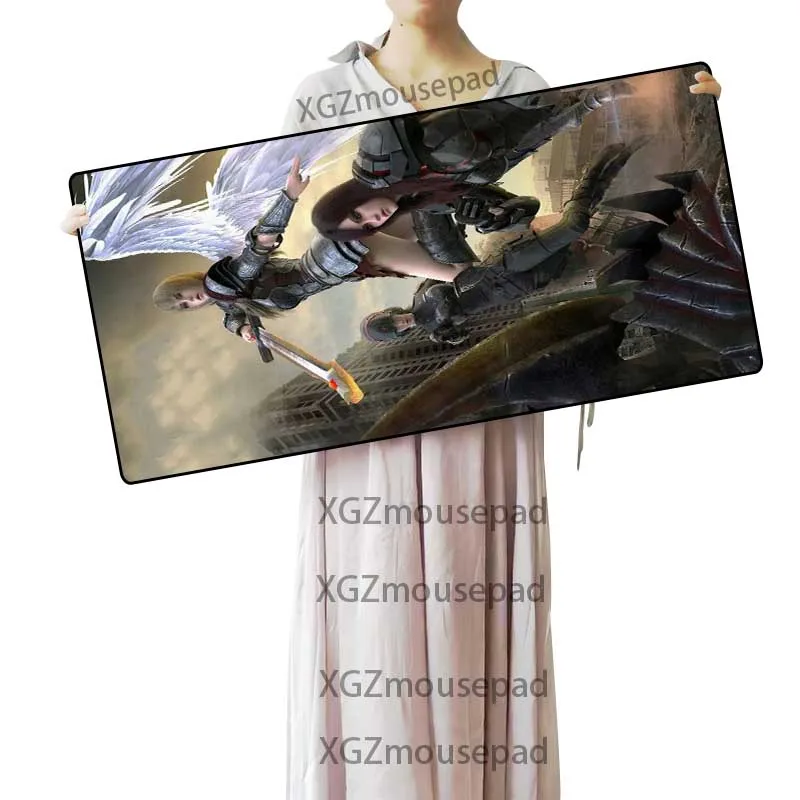 Большой игровой коврик для мыши XGZ, скоростной, с черными краями, аниме, Ривен, HD, под заказ, для офиса, для компьютерного стола, нескользящий коврик, 900x40, 600x300, Xxl