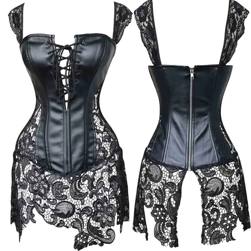 Корсет сексуальный женский бюстье стимпанк корсет платье Готический кожаный и кружевной корсет для похудения готическая одежда бюстье-бурлеск сексуальный