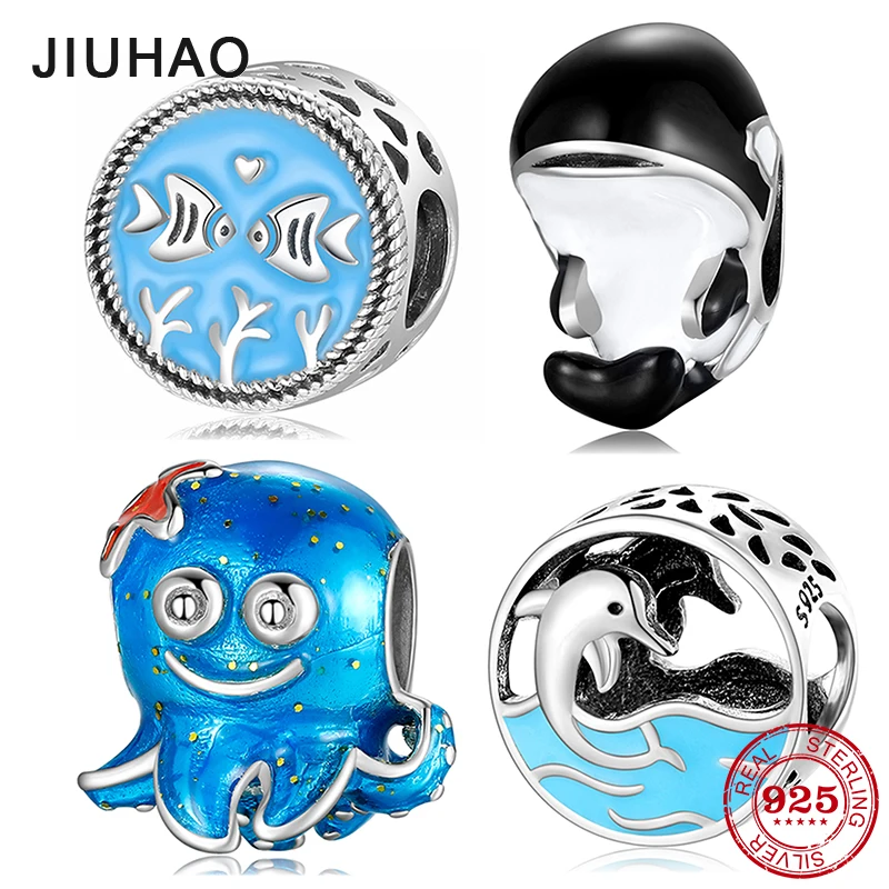 2021 синий Осьминог прекрасный подводный Осьминог Акула Дельфин шармы бусины подходят для JIUHAO Шарм Браслеты DIY 925 Изготовление ювелирных изделий