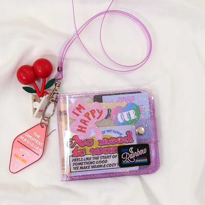 Прозрачный кошелек с желейным вырезом, кошелек для девочек с лазерным узором, кошелек для монет в Корейском стиле, с надписью, держатель для карт, клатч, женские милые кошельки для девочек