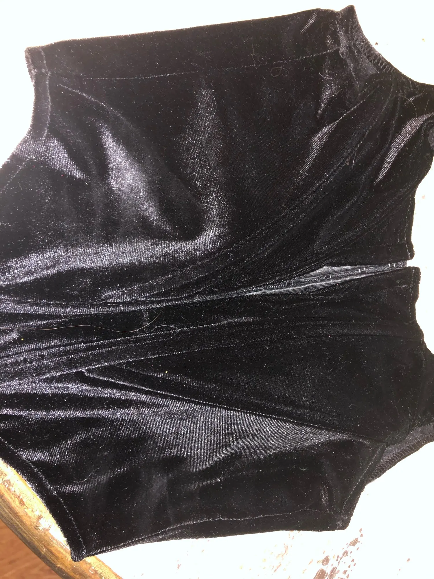 Крой очень отличается от изображенного, а «бархат» тонкий и низкого качества. Возможно, это мой тип тела (я очень маленькая), но он мне совсем не подошел.