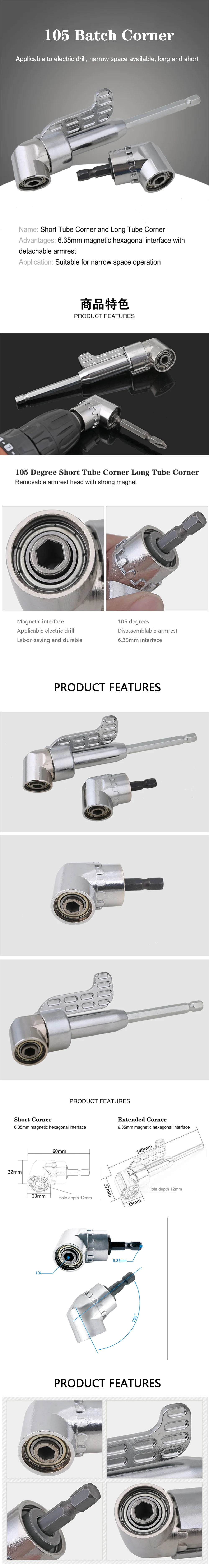 105 градусов 14 адаптер хвостовик Регулируемый Правый Угол дрель шуруповерт торцевой адаптер держателя инструменты