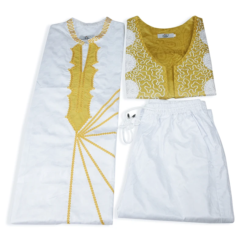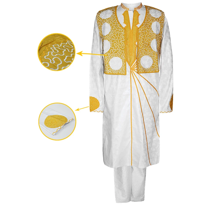 Комплект из 3 предметов, жилет и штаны H D, с вышивкой, из белого золота