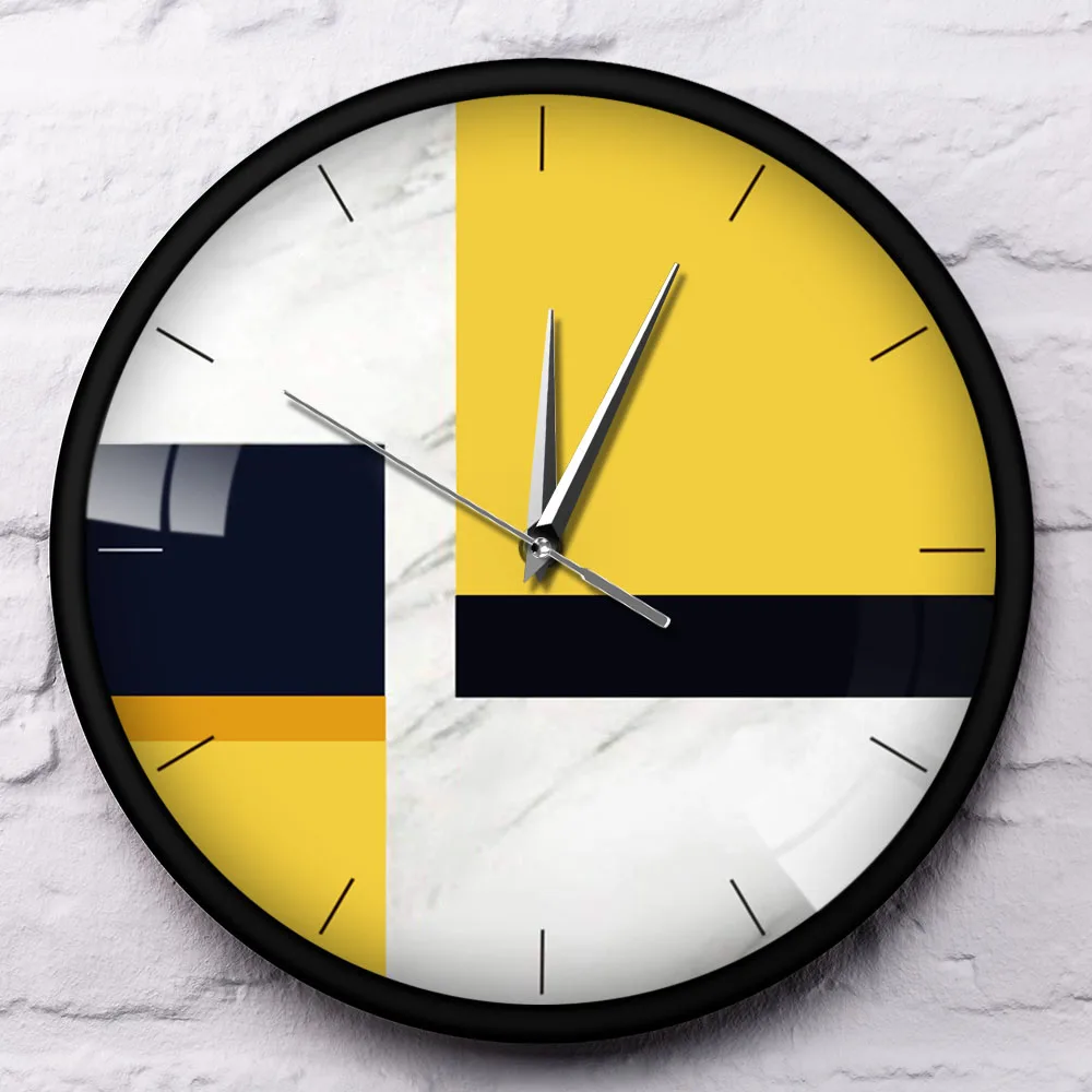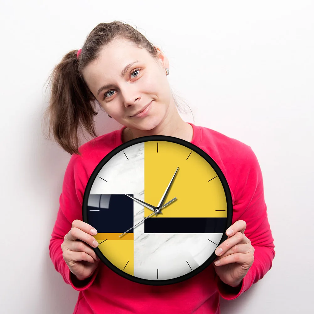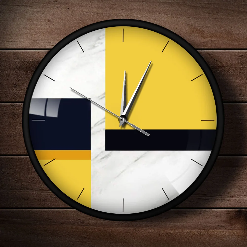 Желтые, черные, мраморные, современные, гладкие, не тихающие, аналоговые металлические настенные часы в скандинавском стиле, 12 дюймов, точный механизм, часы Saat