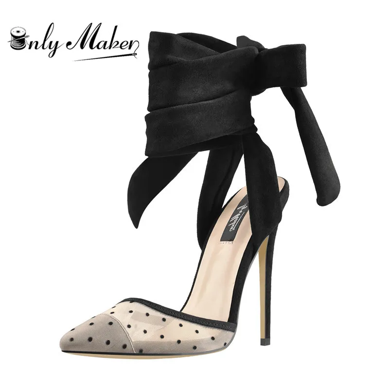 Onlymakerтуфли-лодочки с острым носком на тонком высоком каблуке 12 см; Замшевые босоножки с ремешком на пятке; Размера плюс; US5 US15