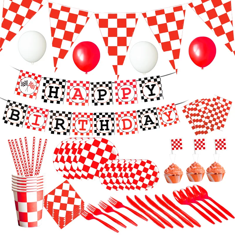 Одноразовая посуда в клетку, красно-белого цвета, для мальчиков, для дня рождения, вечеринки, гонок, тематическая вечеринка, Декор, бумажные тарелки, поставки стаканов