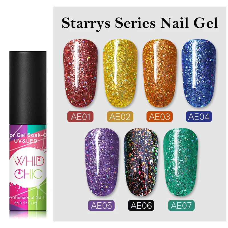 WHID Шикарный Блестящий светодиодный Гель-лак для ногтей со сверкающими блестками