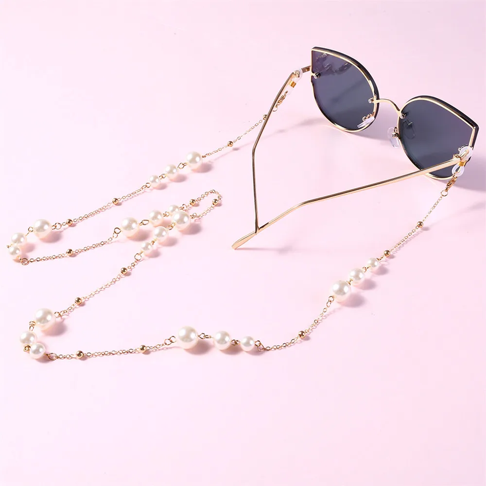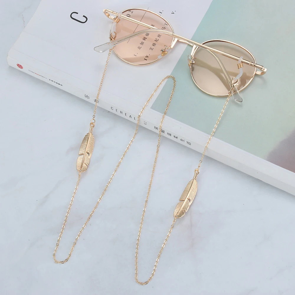 Цепочка для очков женская с жемчугом, модная цепочка для солнцезащитных очков, шнурок-держатель с золотыми листьями, шнурок для очков, ожерелье, ремешок