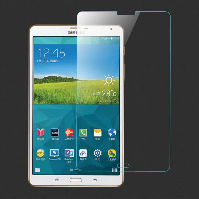 Размеры указаны только для Samsung Galaxy Tab S 8,4 дюймов (T700 / T705 / T705Y) Материал: твердое закаленное стекло 9H Упаковка: 1 стекло + 1 Чистящая салфетка/1 пенная сумка, внешняя коробка из пенопласта, без розничной цветной коробки