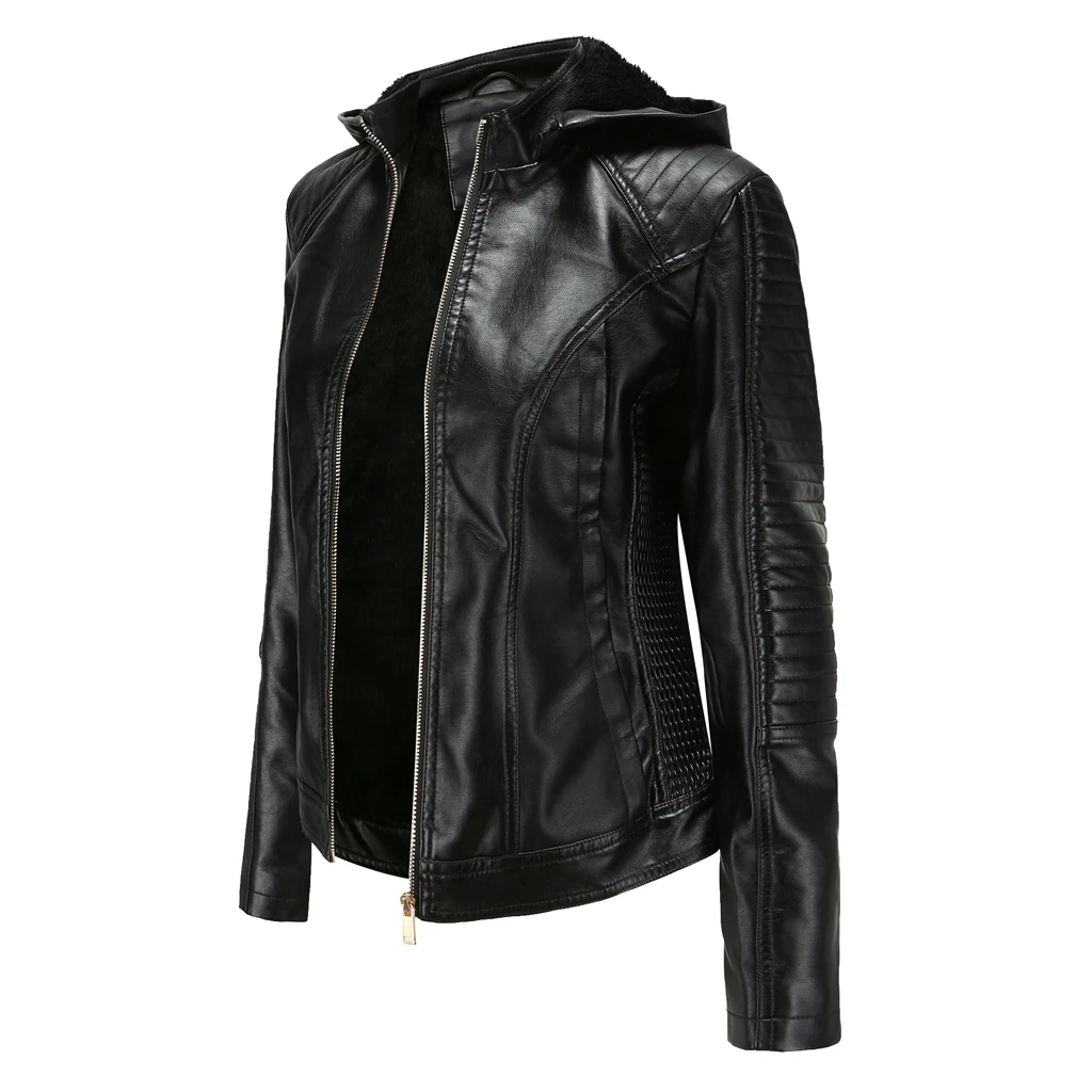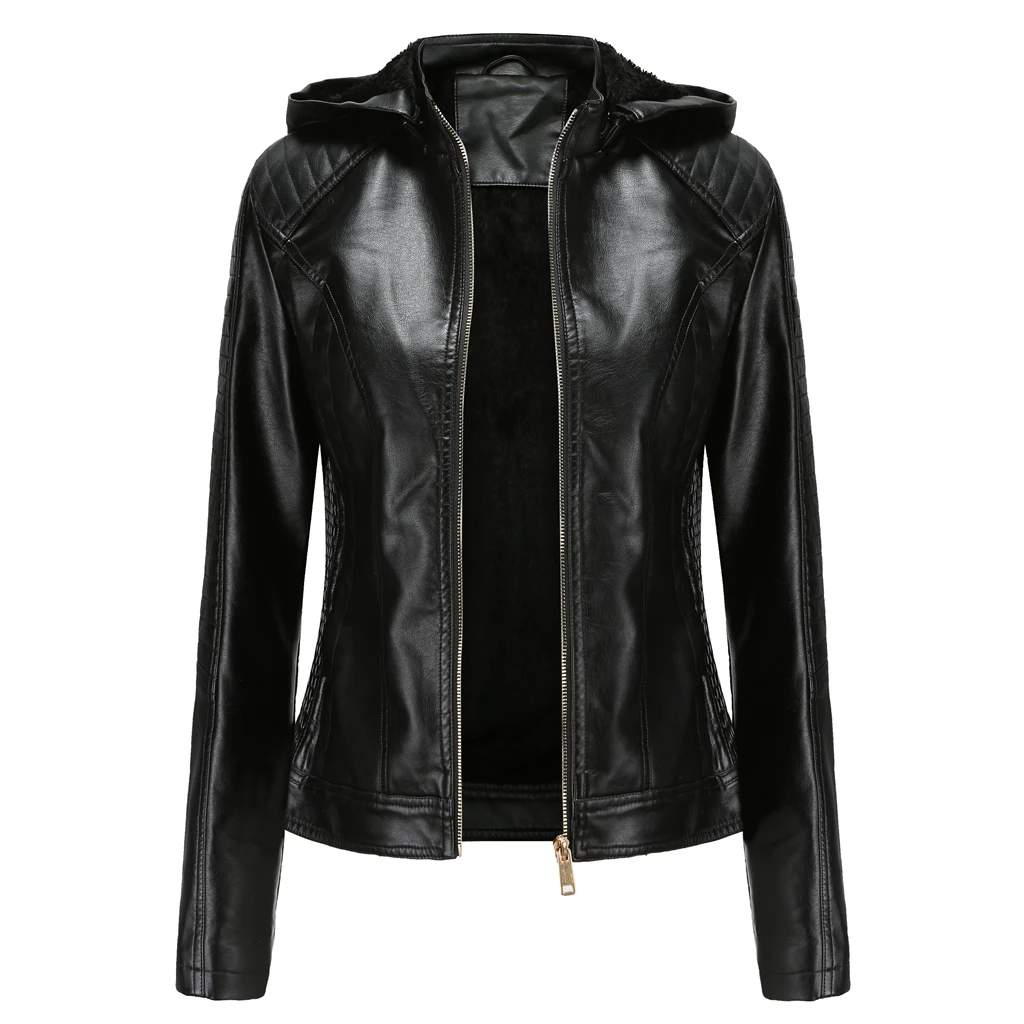 Куртка женская из искусственной кожи, на молнии, с капюшоном, большого размера, весна-осень-зима, 2020