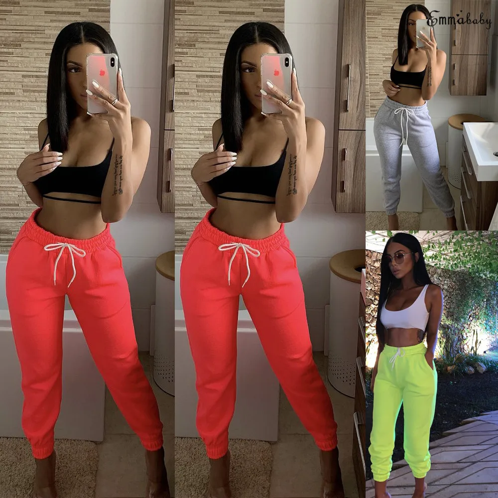 Женские спортивные штаны Goowrom с высокой талией, эластичные спортивные штаны для спортивного зала для бега, повседневные длинные штаны на шнурке для девушек, джоггеры