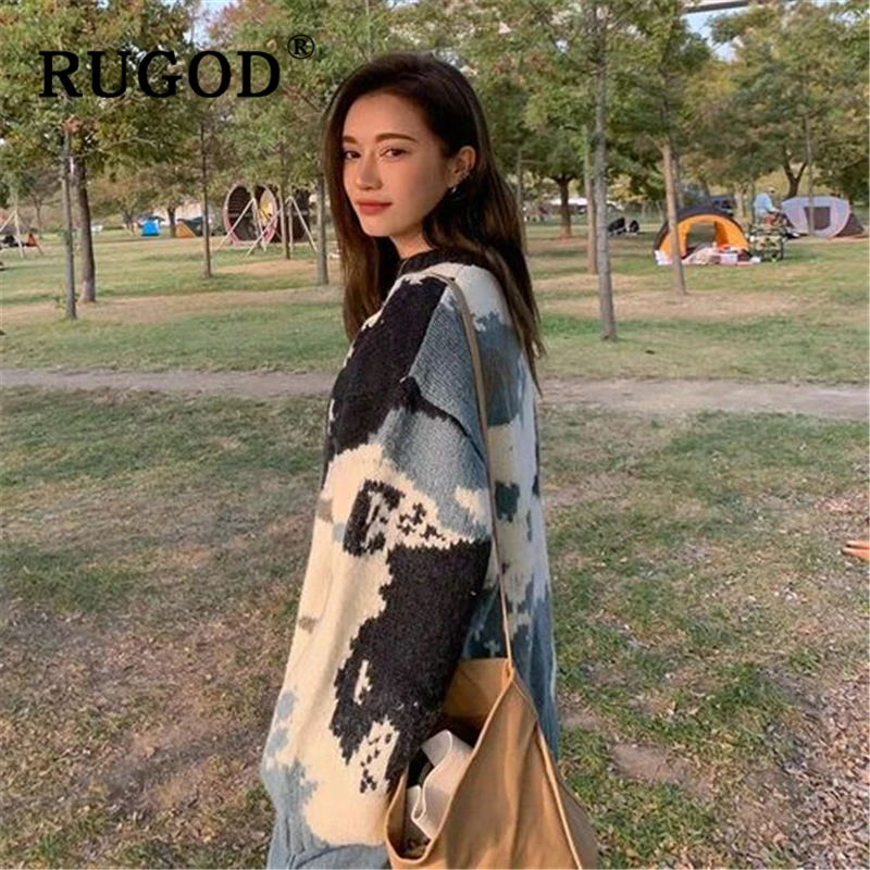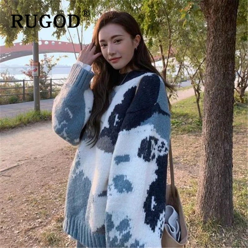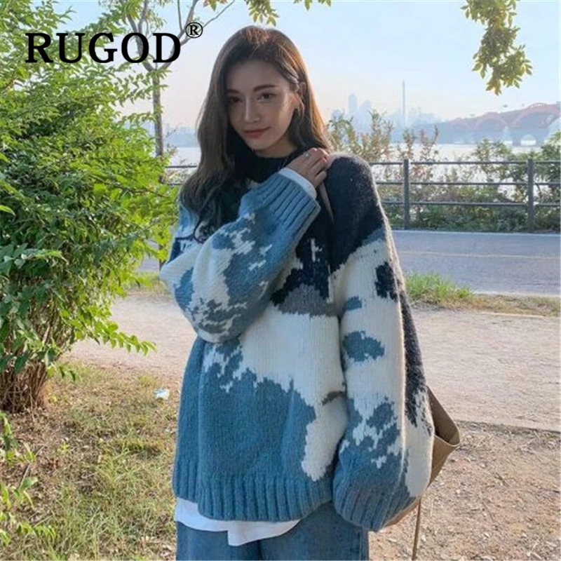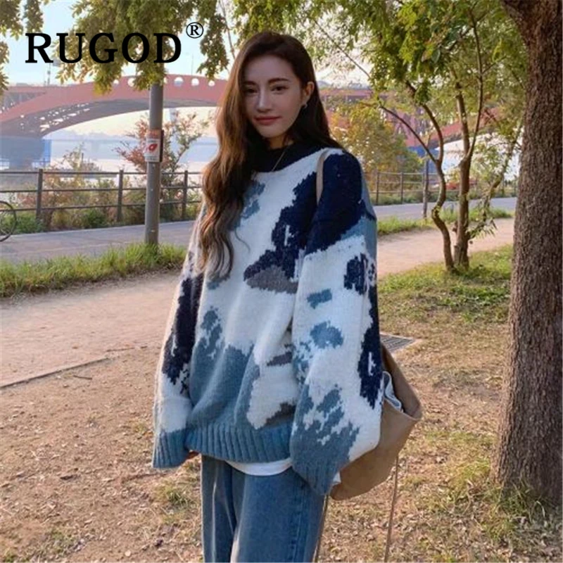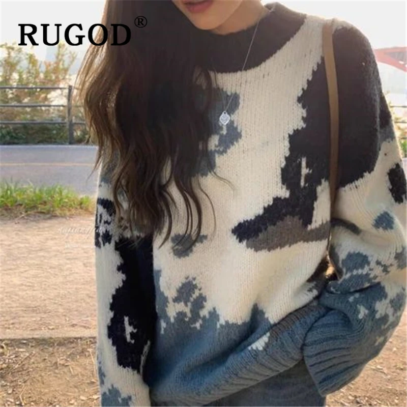 Женский Теплый свитер с принтом RUGOD, корейский пуловер с круглым вырезом и винтажным мягким оверсайз, зима 2019