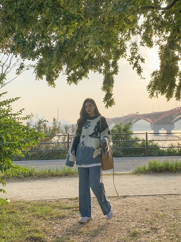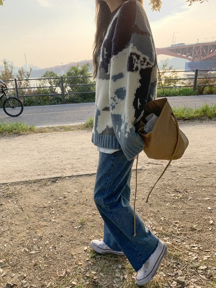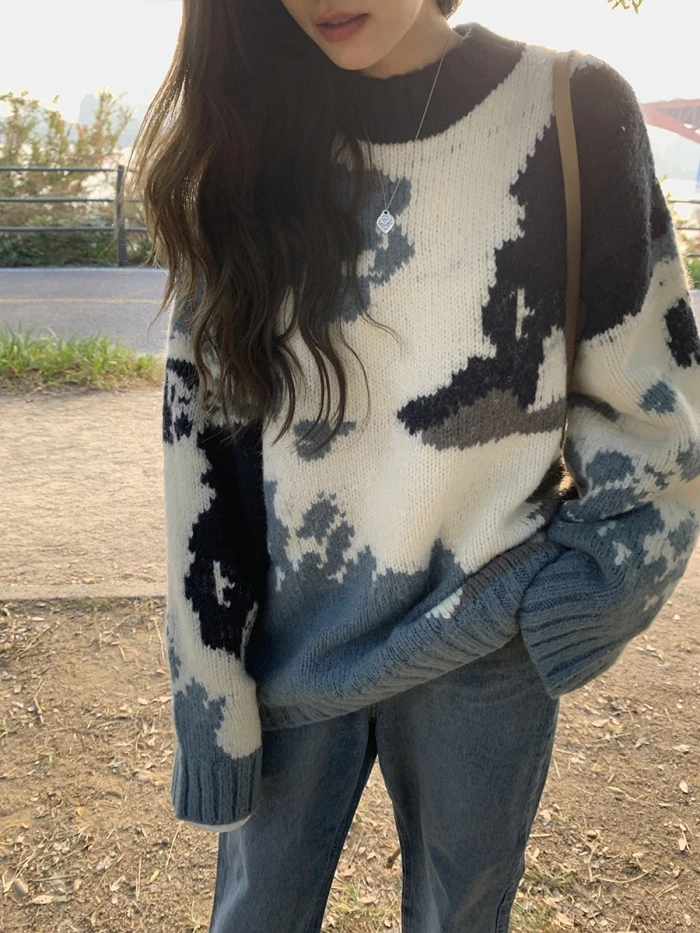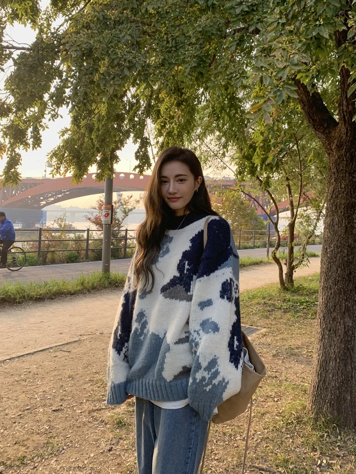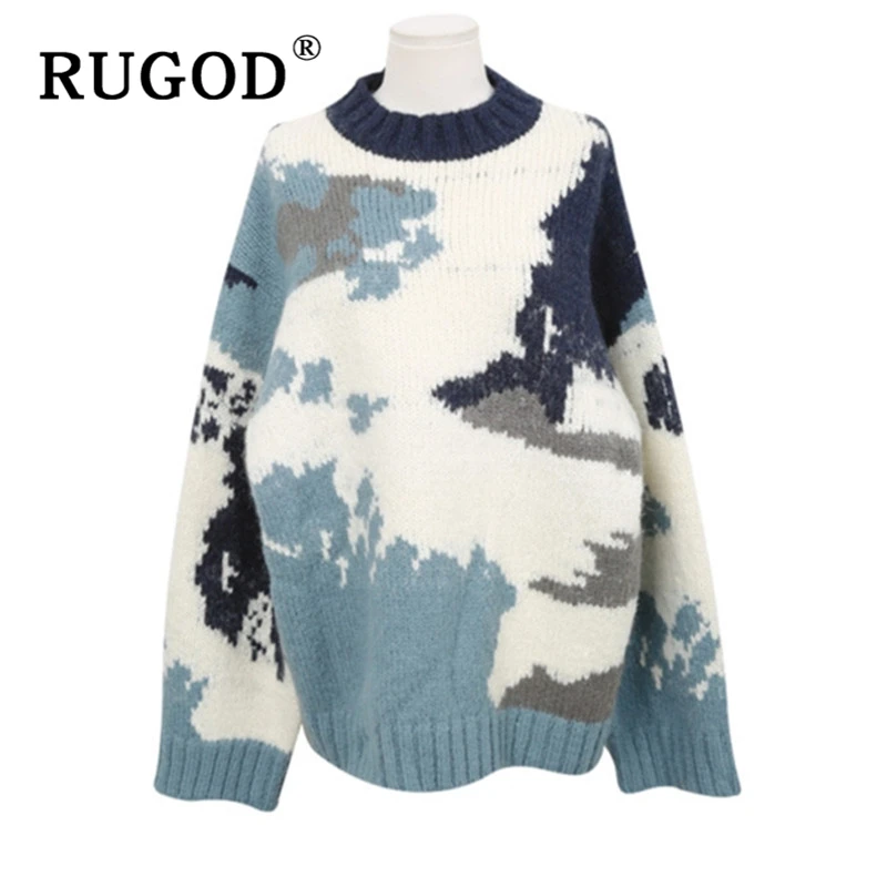 Женский Теплый свитер с принтом RUGOD, корейский пуловер с круглым вырезом и винтажным мягким оверсайз, зима 2019